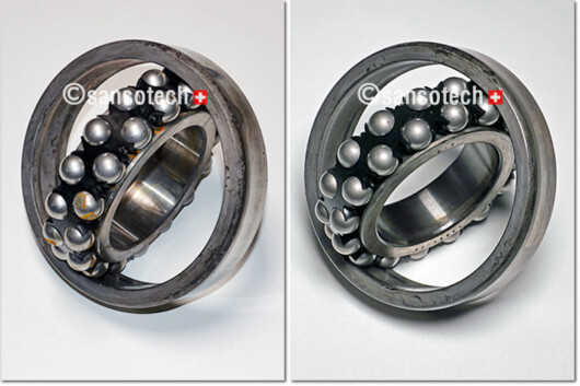 Linkes Bild: Kugellager - ohne Korrosionsschutz im Spülbad behandelt, danach an der Luft trocknen lassen.