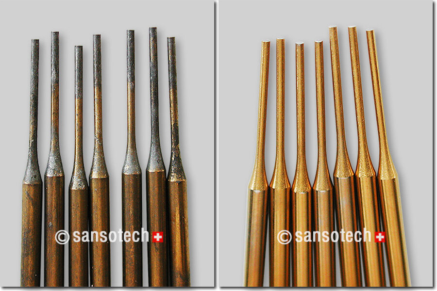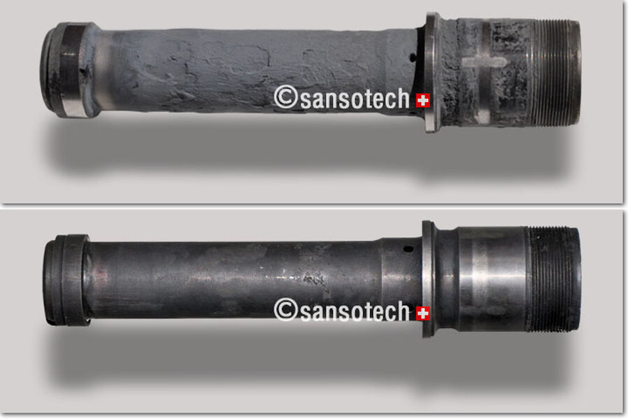 Bauteil aus einem Spezialwerkzeug, vor und nach der Ultraschallreinigung